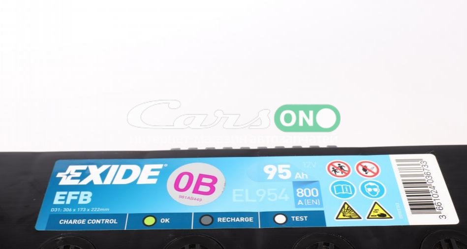 Акумуляторна батарея 95Ah/800A (306x173x222/+R/B01) (Start-Stop EFB) Азия EXIDE EL954