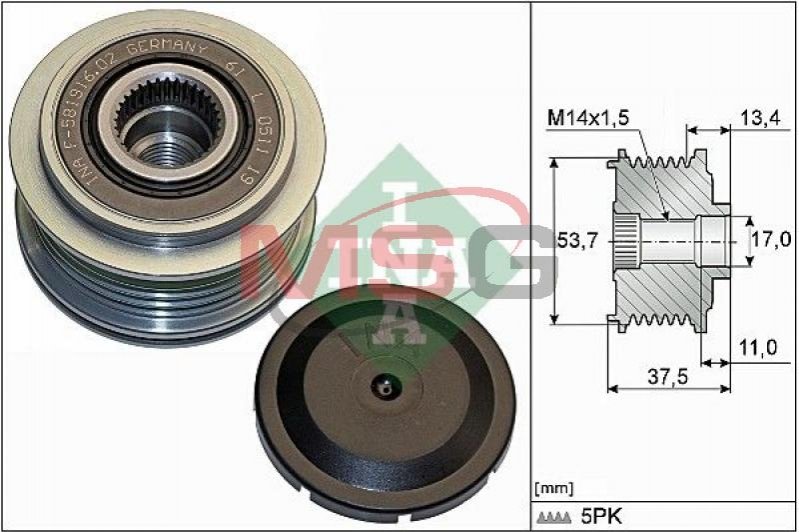 Шків генератора Fiat Panda/Punto/Tipo/Opel Corsa 14- INA 535 0278 10