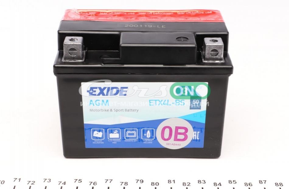 Акумуляторна батарея 3Ah/50A (113x70x85/+R/B0) (AGM) (мото) (сухозаряджений) EXIDE ETX4L-BS
